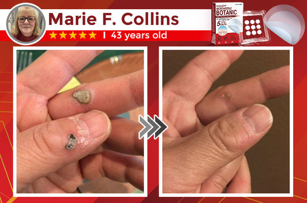 "I've observed an increase in warts on my hands. While l understand they're harmless, they still bother me. After seeing the microneedle botanical patch at the clinic, I decided to give it a shot, and the results have been remarkable. In just two days, some of the warts began to fade and eventually fell off. i'm really happy i decided to try it!"- Marie F.Collins, Kennebec, USA