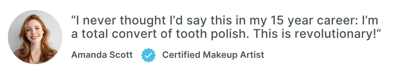 Just like applying your go-to lipstick or foundation,Tooth Polish gives your teeth an instant glow-up. lt adds the same boost of confidence to your smile that make up brings to your face. with a few simple strokes,your teeth look brighter, smoother,and more radiant. No bleaching, no harsh procedures, and absolutely no waiting